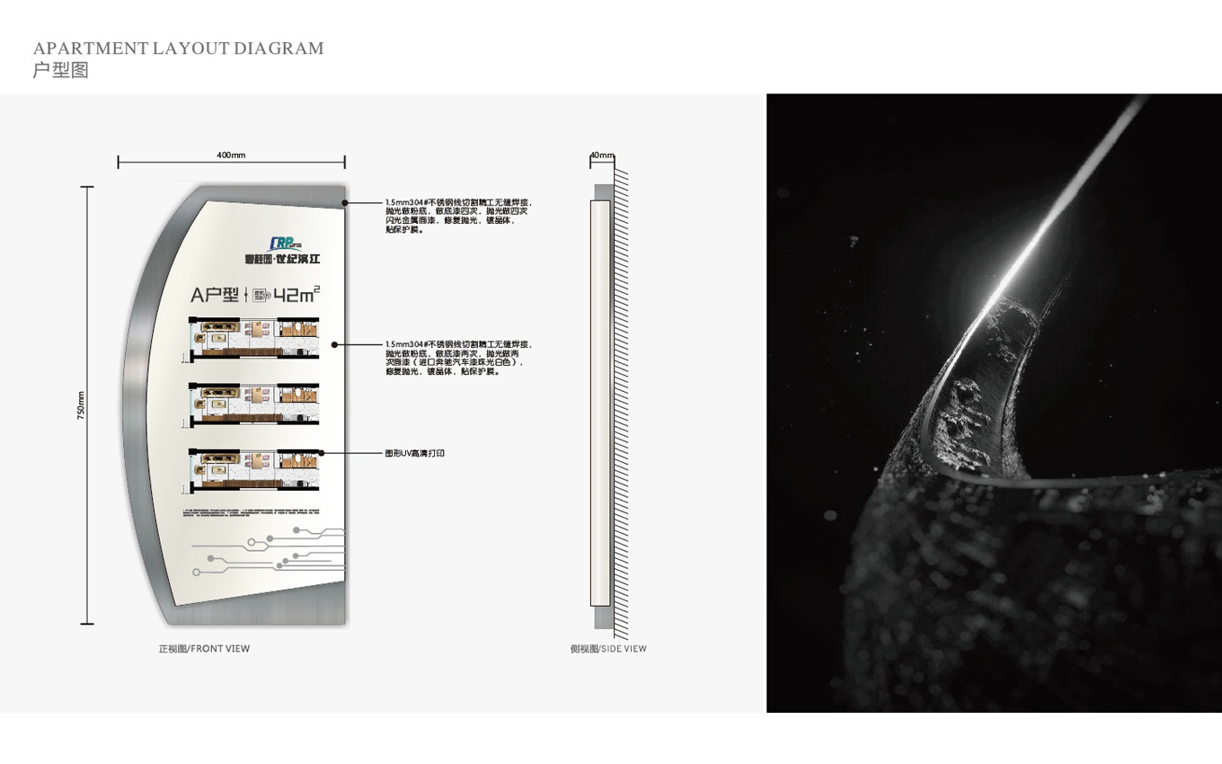 碧桂園·世紀(jì)濱江總占地約123畝,總建筑面積35萬㎡,世紀(jì)濱江標(biāo)識(shí)設(shè)計(jì)以“濱江生態(tài)·花園辦公”概念為藍(lán)本,打造灣區(qū)創(chuàng)新門戶,佛山首個(gè)濱江產(chǎn)融旗艦綜合體。地產(chǎn)標(biāo)識(shí)設(shè)計(jì)制作范圍涵蓋獨(dú)棟總部、濱江寫字樓、創(chuàng)變SOHO、活力街區(qū)、江畔美宅5大業(yè)態(tài)、打打造集“大企業(yè)展廳、智能科技體驗(yàn)中心、智能總裁駕駛艙、科技交流中心、創(chuàng)新科技服務(wù)中心、科技孵化加速中心”等功能于一體的企業(yè)科技創(chuàng)新會(huì)客廳,鑄造佛山科技創(chuàng)新的新名片,推動(dòng)佛山創(chuàng)新智造產(chǎn)業(yè)發(fā)展。標(biāo)識(shí)設(shè)計(jì)構(gòu)思以:濱江生態(tài)與科技結(jié)合,金屬質(zhì)感樹干造型+圍邊樹葉,指示內(nèi)容印于樹葉上,簡潔金屬流線型線條,結(jié)合濱水靈動(dòng)+科技硬朗質(zhì)感。