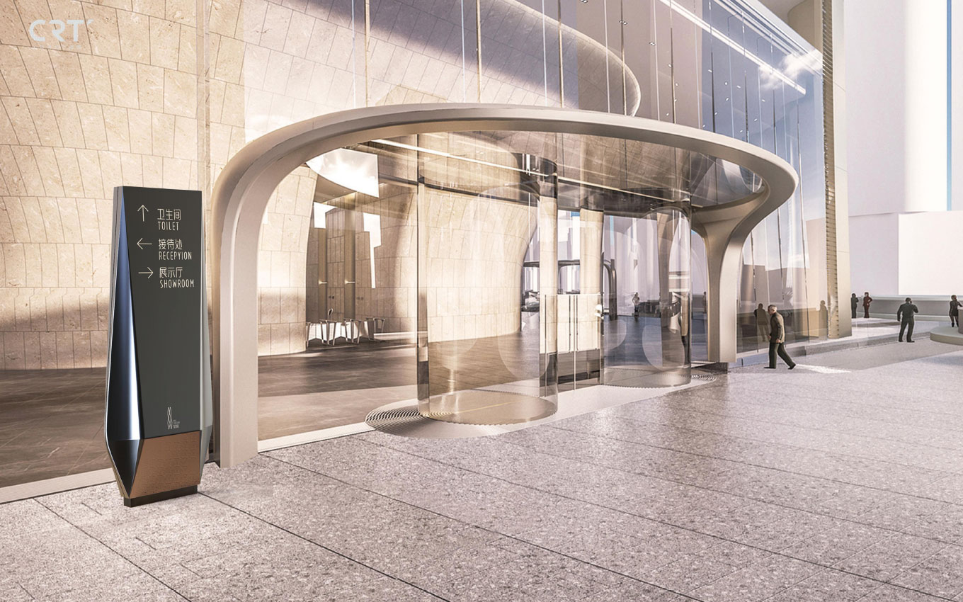 未來流動性的外立面設(shè)計,在售樓部標識設(shè)計中,也延伸了視感流動性的外立面特點,把杭州望朝中心導視設(shè)計用現(xiàn)代科技的曲線形式進行構(gòu)思,以切面的造型,加上金屬的品質(zhì)感覺。在杭州2022年亞運會的主辦城市,借勢實現(xiàn)品牌文化的傳播,以國際化的視覺去呈現(xiàn),人和時代CRT杭州標識設(shè)計公司以超前視覺感覺、以建筑曲線作為靈感覺,不銹鋼疊片組成企業(yè)元素圖形,滲透著光影掠過天際,漸消面園弧切線,外星科技感覺流線造型。