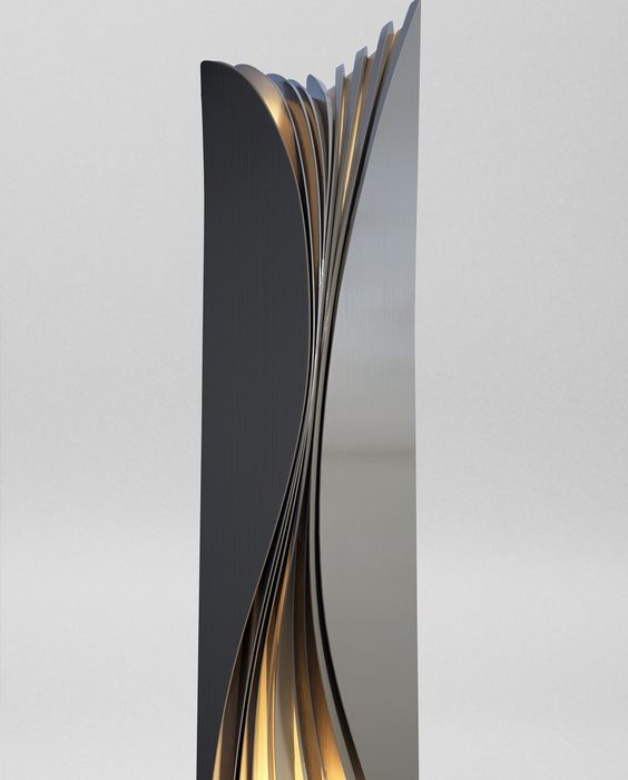 一片葉子的標(biāo)識牌與金色及灰色的切面發(fā)光效果。