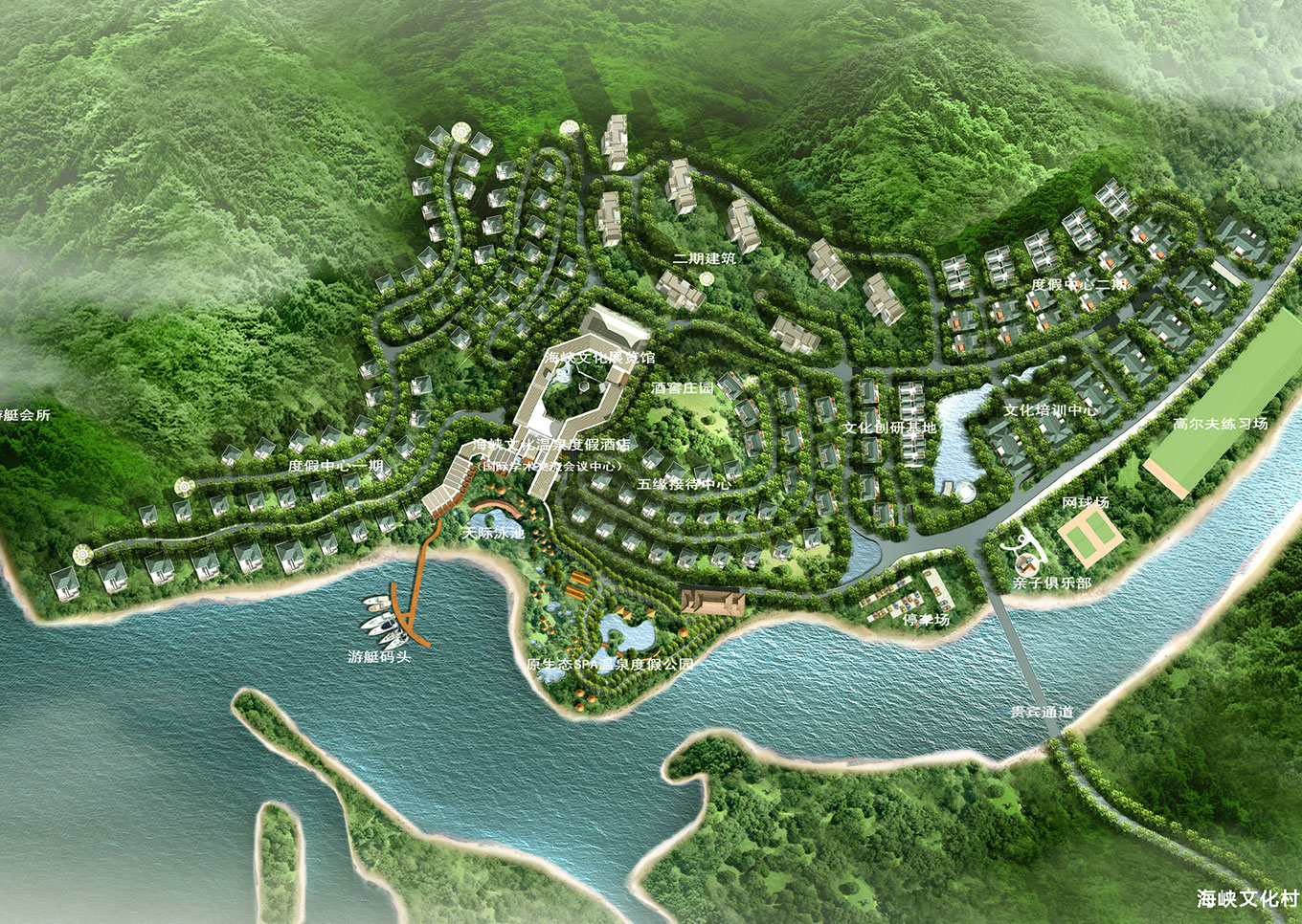 福州海峽文化村度假景區(qū)項目位于福建省福州市貴安溫泉旅游度假區(qū)東側,地處古碑曰“青甲池”之境。南北長1000米,東西寬約450米,北臨敖江,南側有西溪貫穿南北,東、南兩面環(huán)山。