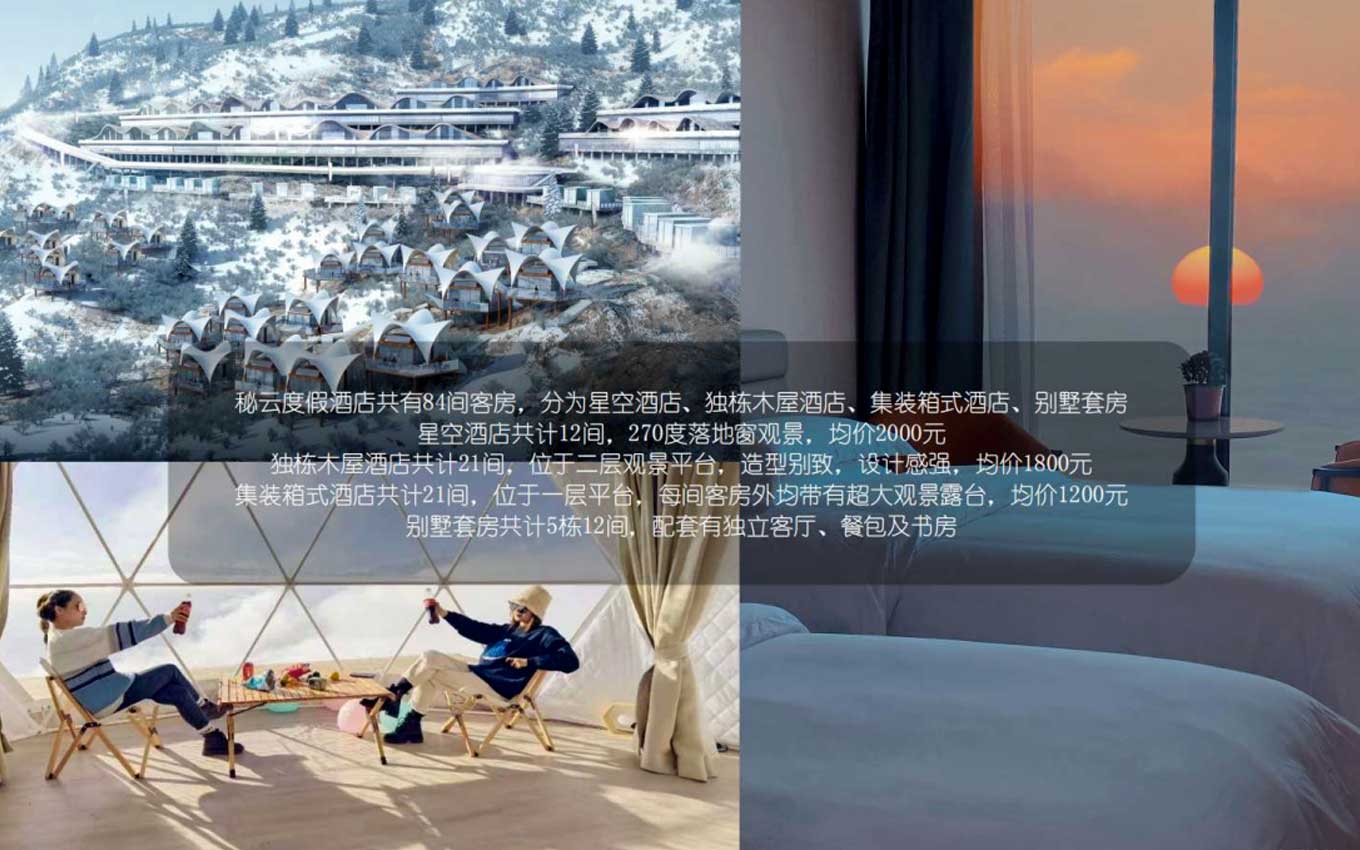 亞洲最美360°觀景平臺——牛背山,秘云星空度假村駕露宿占地面積40畝,有著大型的地下停車場,酒店住宿,餐館,度假旅游招待核心等服務(wù)項(xiàng)目服務(wù)設(shè)施,集裝箱房屋17家,星空帳篷酒店13家,固定不動(dòng)醫(yī)院病床50張,標(biāo)間20間,大被單間10間,露營帳篷50間;可與此同時(shí)招待150人。