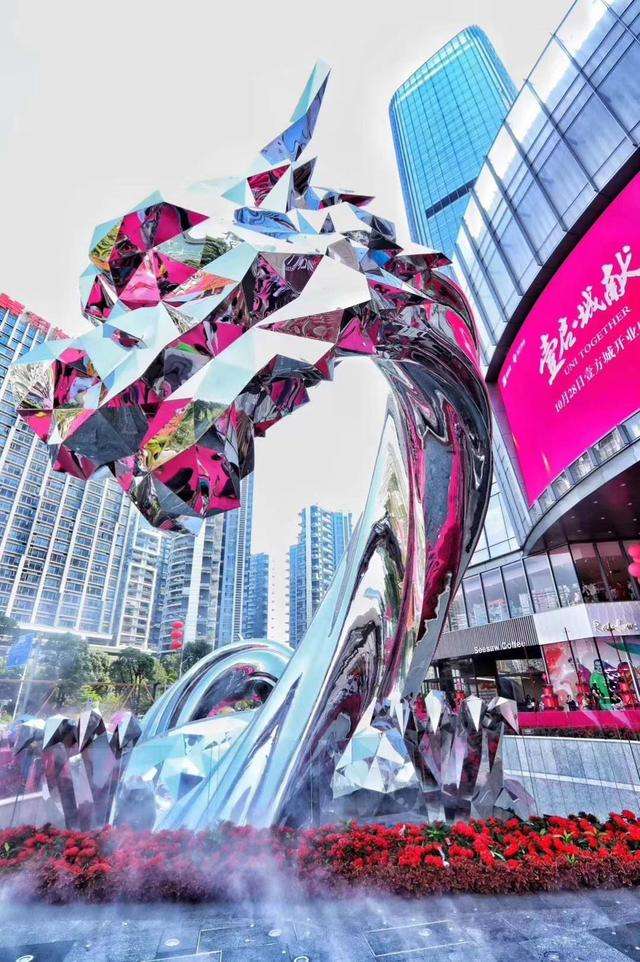 One Square City Shopping Center brings together a variety of gourmet social gatherings, fashion products of clothing, shoes and hats, entertainment, audio-visual children's cultural creativity and leisure sports. Here, our logo and signage is inspired by the wind and waves as a whole, and the three themes are designed with the natural laws of architecture. The whole area is 45 meters away. The source, bay, and sink are combined with architectural commerce and art. Create a unique and high-quality experiential business environment.